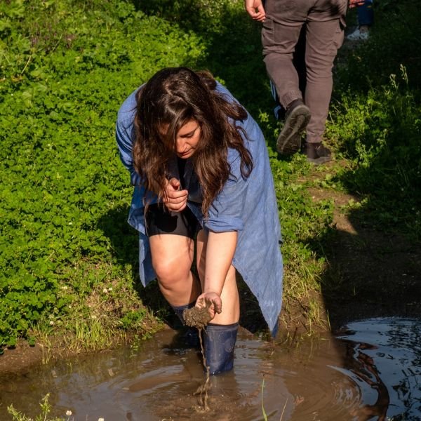 Η performer Ζωή Δρακοπούλου, μαζί με 17 θεατές/συνοδοιπόρους, θα ξεκινήσει ένα πολύωρο περπάτημα, μέρος της μυητικής σύνδεσης του φυσικού με το αστικό τοπίο, δίνοντας το ρυθμό μιας σύγχρονης τελετουργίας. Η περιπατητική διαδρομή, περνώντας από διάφορα σημεία που επλήγησαν από την πλημμύρα του 2023, θα καταλήξει στο Β’ Αρχαίο Θέατρο Λάρισας, σε μια πειραματική παράσταση ανοιχτή προς το κοινό, με σκοπό να θέσει ερωτήματα για να αναστοχαστούμε τη σχέση μας με τον τόπο, την κοινωνία και τον εαυτό μας.