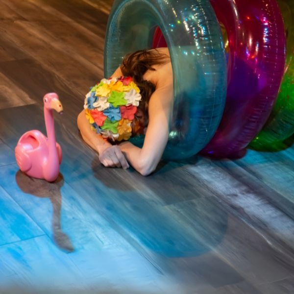 Στην καρδιά της παράστασης βρίσκεται ο χαρακτήρας μίας κολυμβήτριας που αναζητά τη θάλασσα μέσα σε ένα αστικό περιβάλλον – μια ποιητική μεταφορά για την αναζήτηση ταυτότητας σε έναν κόσμο συχνά παράλογο και αποπροσανατολιστικό.